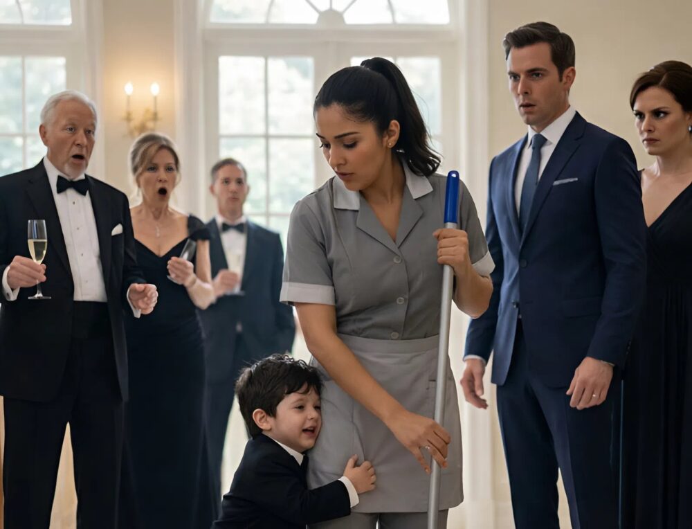 The child, who had not spoken a single word for over a year since his mother’s death, had just broken his silence to call “Mama”… a woman wearing a gray uniform, her hair tied in a ponytail, still holding a broom.